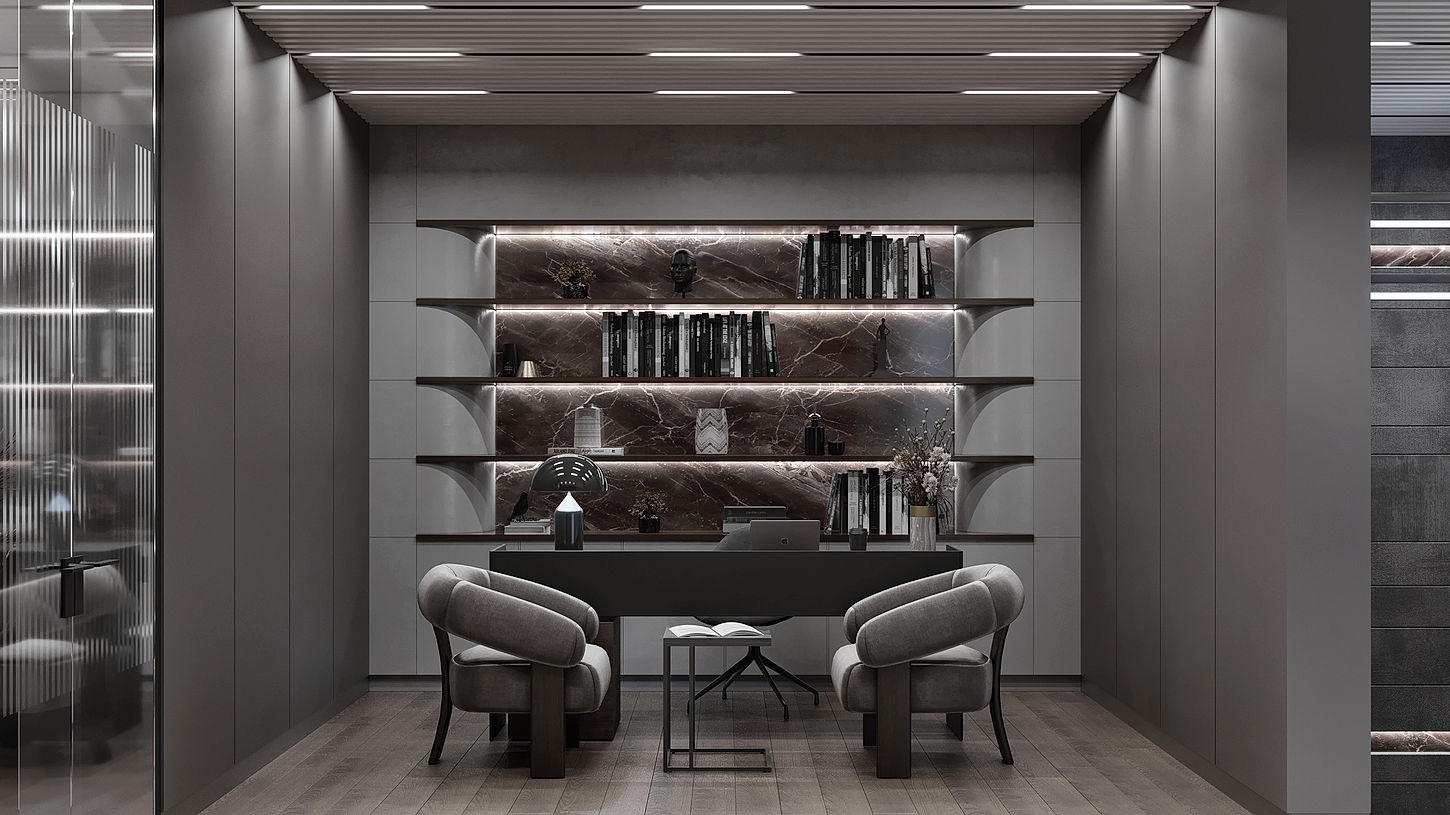 A contemporary laboratory-office interior designed to merge functionality with modern workplace aesthetics. The concept combines clean lines, neutral tones, and high-tech details to create a space that feels both efficient and visually refined. Natural light, transparent partitions, and minimal furnishings support clarity and focus, while subtle textures add warmth to an otherwise technical environment. The result is a balanced design that seamlessly combines precision and comfort.