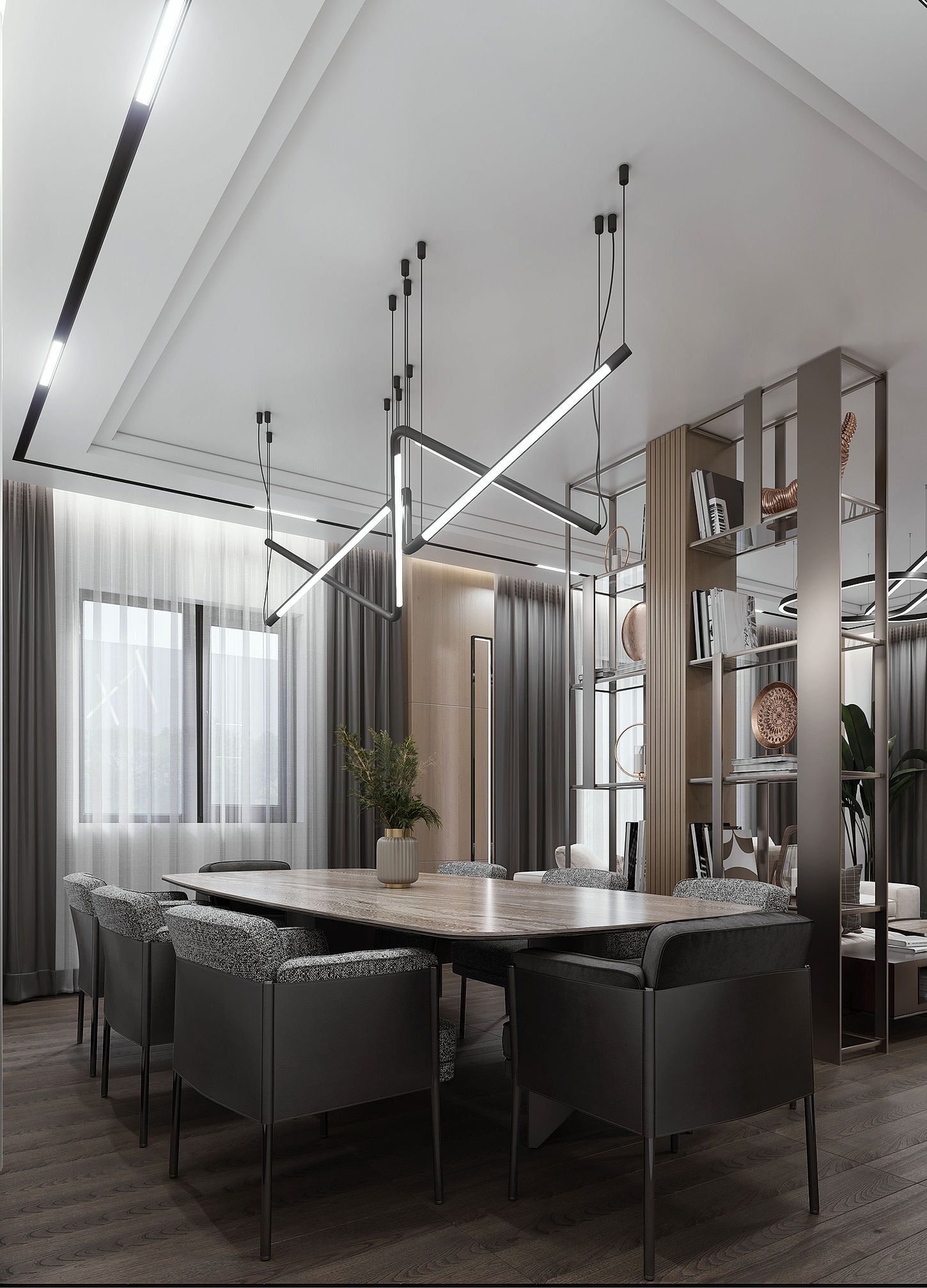 Designed around a calm and cohesive atmosphere, this interior project blends natural textures, soft colour transitions, and refined materials to create an inviting modern look. Wooden accents pair seamlessly with clean metal details, while subtle fabrics add comfort without visual clutter. Each space—from the living area to the bedroom and kitchen—is arranged for smooth circulation and everyday ease. Layered lighting enhances the architecture and reinforces the contemporary character. The result is a balanced, elegant interior with understated sophistication.